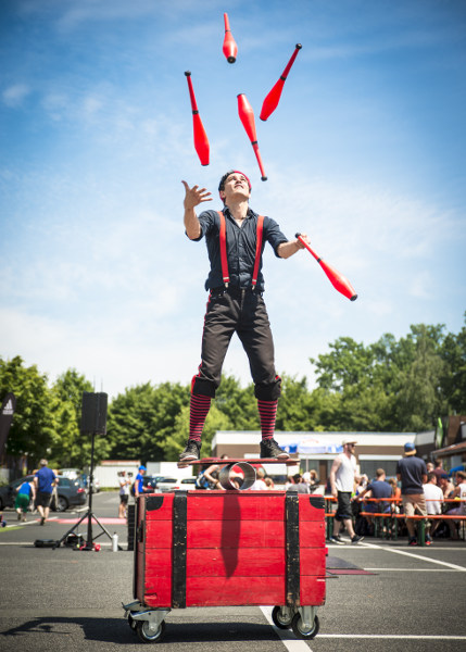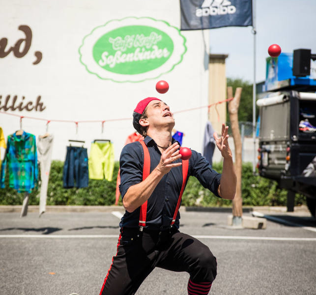 Als Eichi und der Spasskoffer bietet Ihnen der Comedy Jongleur Stefan Eichbauer ein handfestes Jonglageprogramm kombiniert mit Balanceakrobatik, Tempo und Komik.