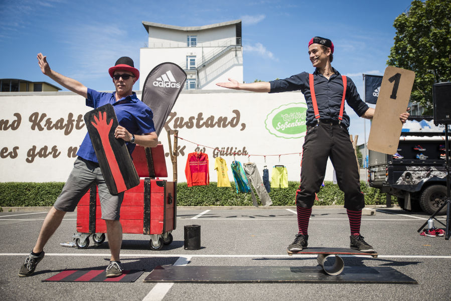 Lassen Sie sich anstecken von der Leichtigkeit und Lebensfreude, die Eichi und der Spasskoffer über den Bühnenrand hinaus mitten in Ihr Publikum bringt. Mit Vorliebe baut er auch eine Hauptperson Ihrer Veranstaltung in eine seiner Nummern ein.