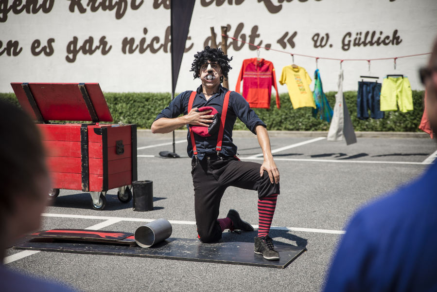 Seine spektakulären, zum Teil auch irrwitzigen Einlagen bringen das Publikum zum Staunen, Lachen, Mitfiebern oder Nachdenken.
